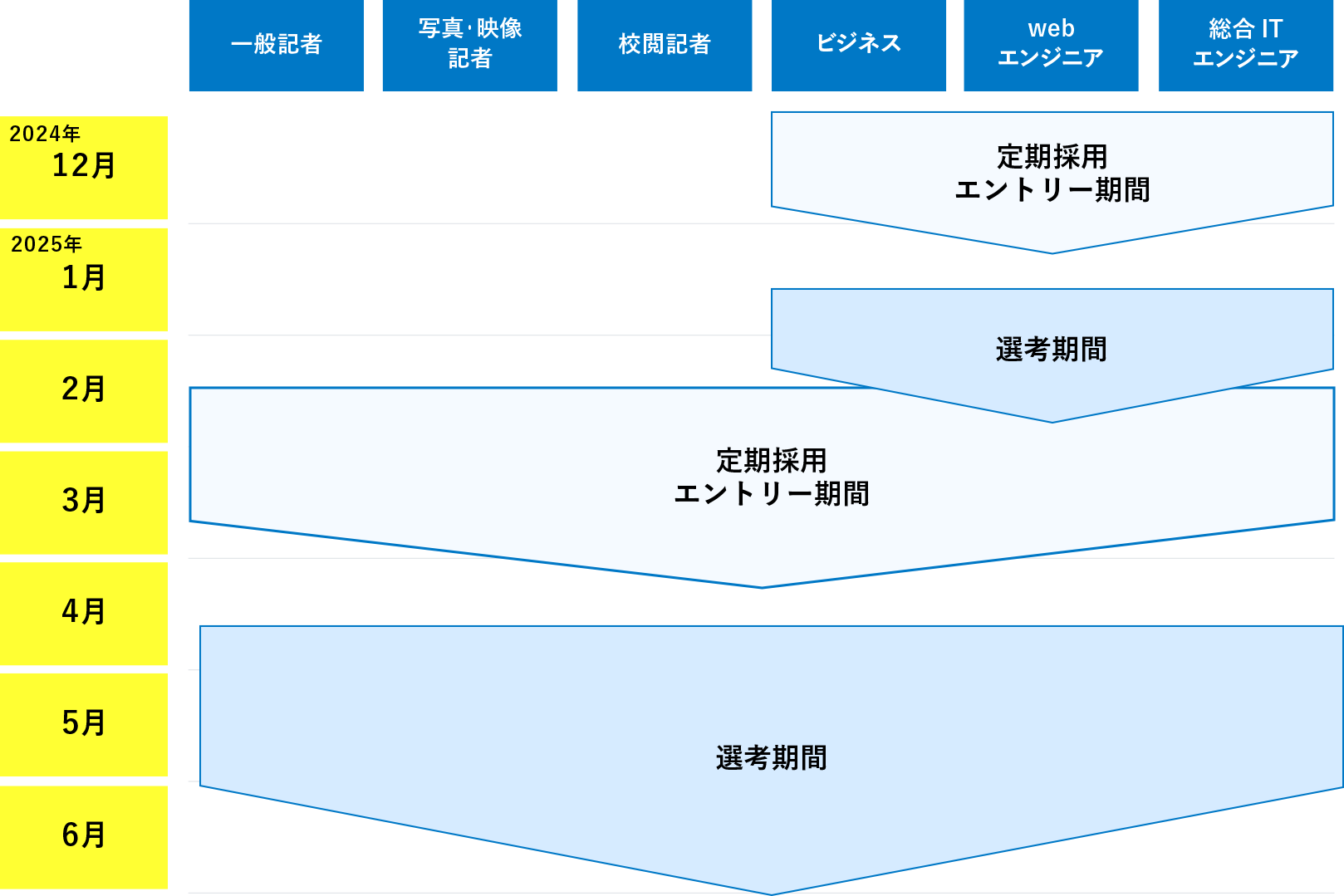 募集職種 | ⼀般記者 | エントリー期間 2月25日(火)~4月9日(水)正午 |